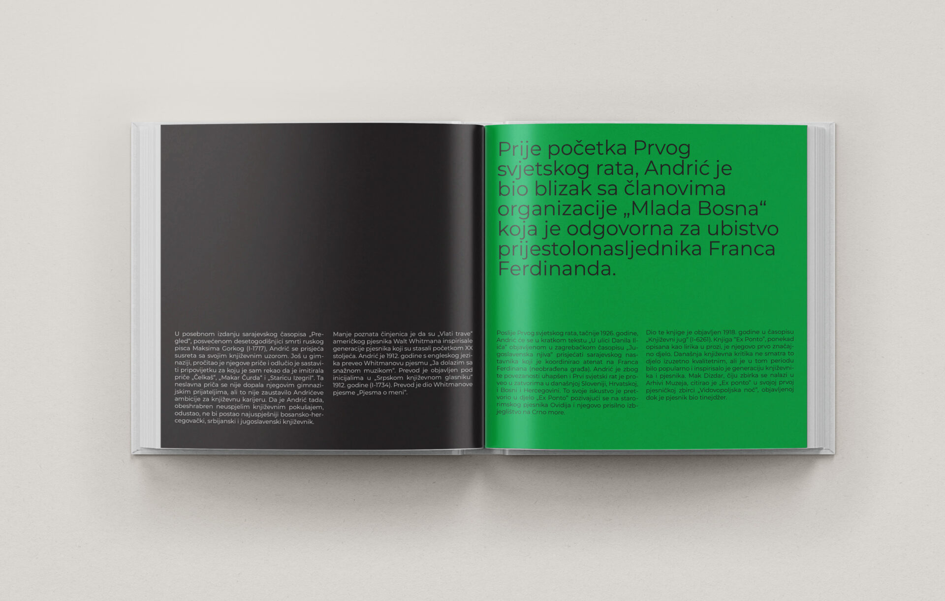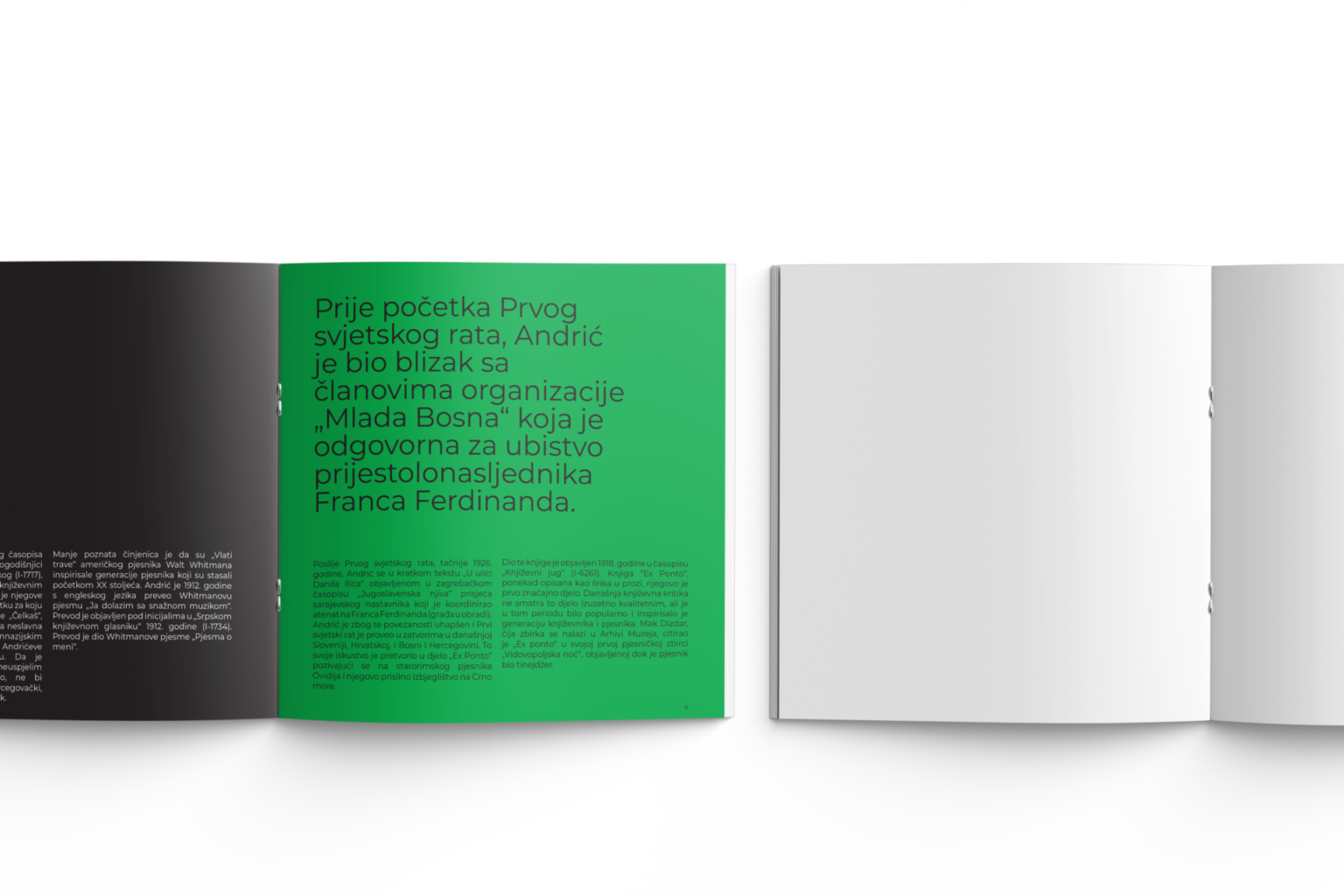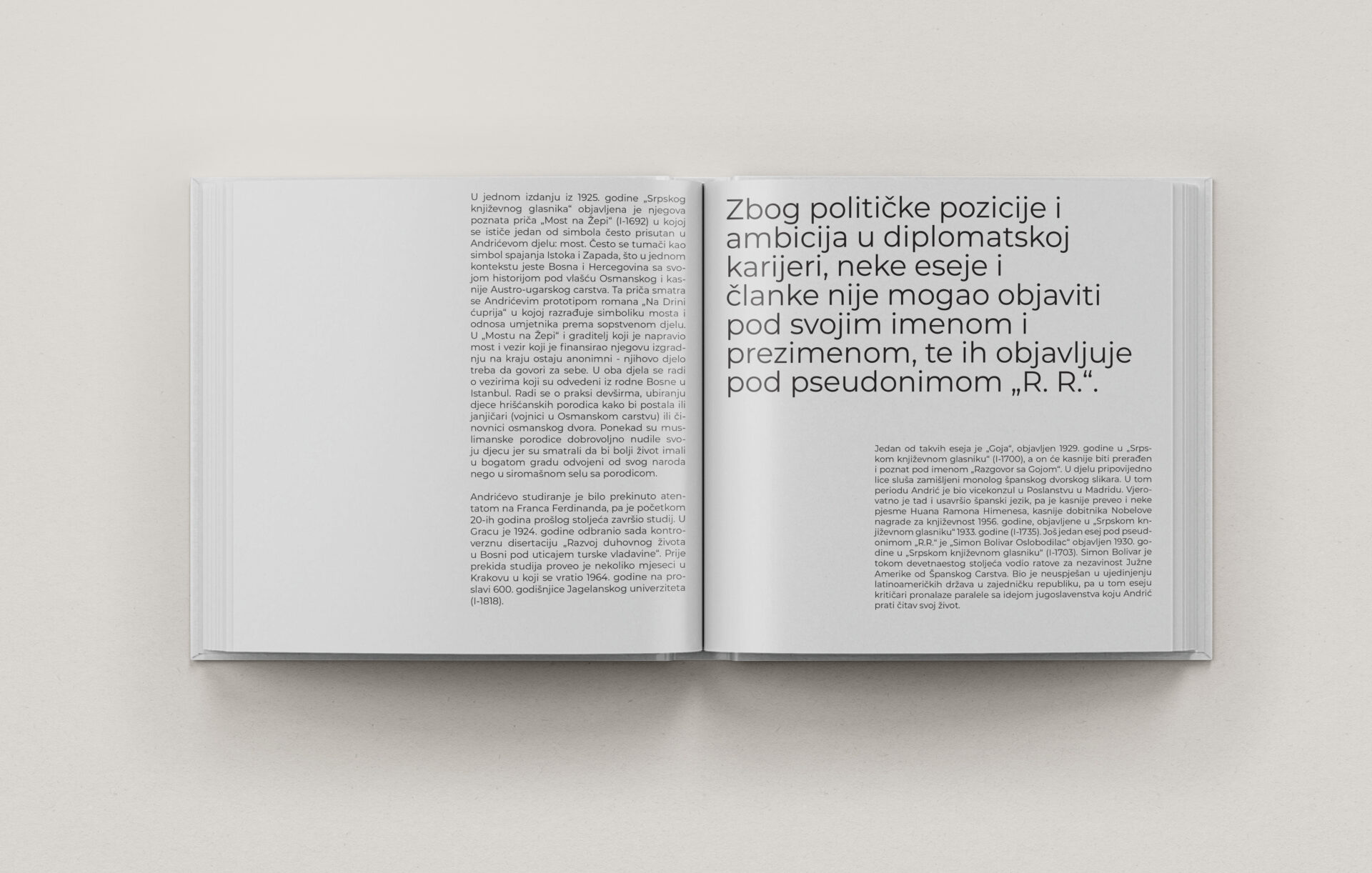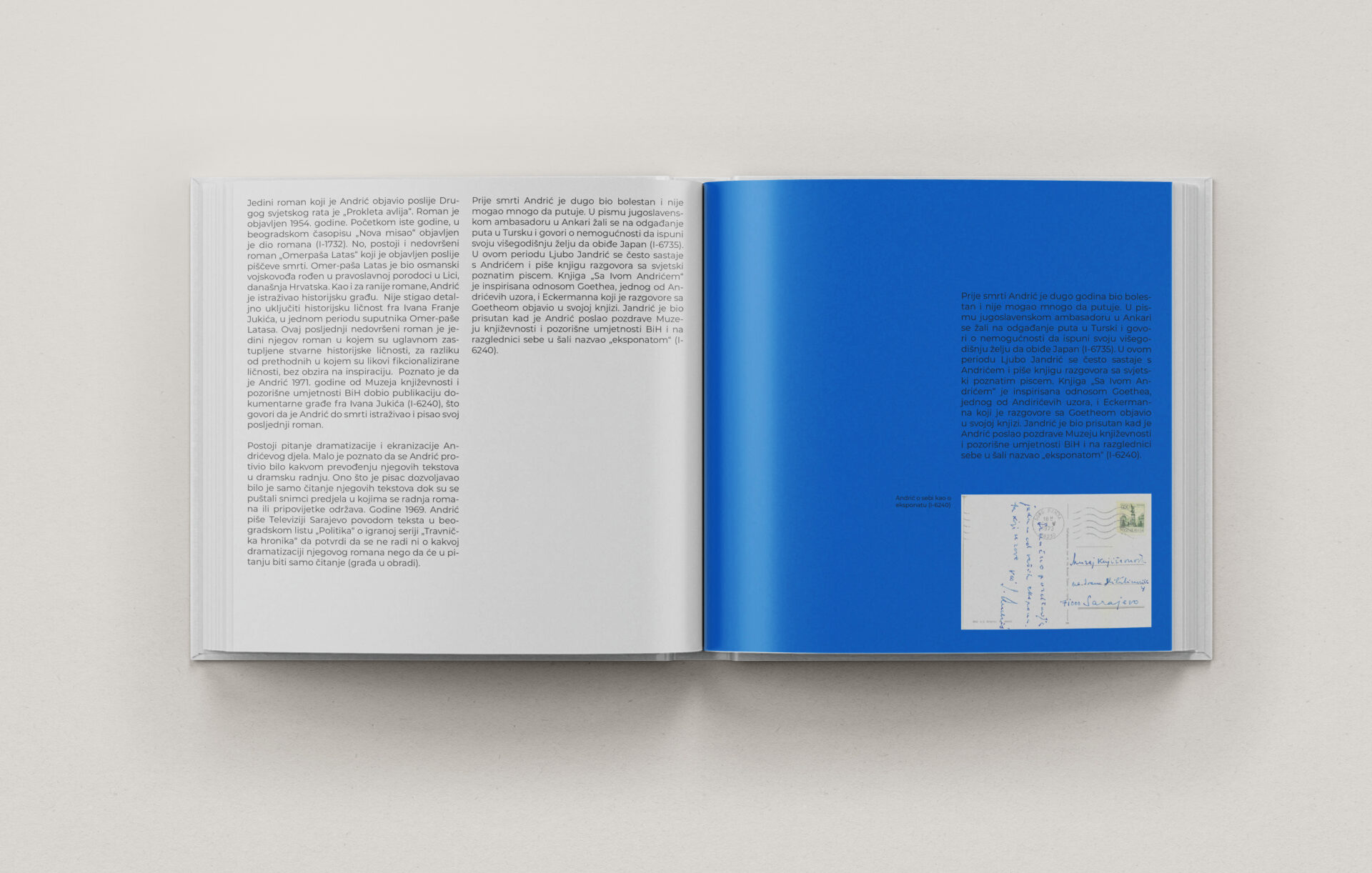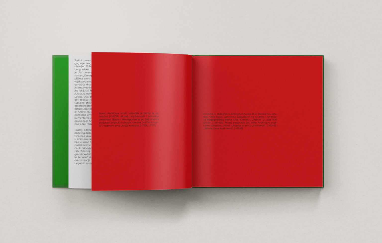 In collaboration with the Museum of Literature and Performing Arts of Bosnia and Herzegovina, this project involved the design of two archival readers dedicated to Ivo Andrić and Razija Handžić. Built entirely from original materials preserved in the museum’s collection, these books reveal lesser-known stories and present archival heritage in a contemporary, accessible format.