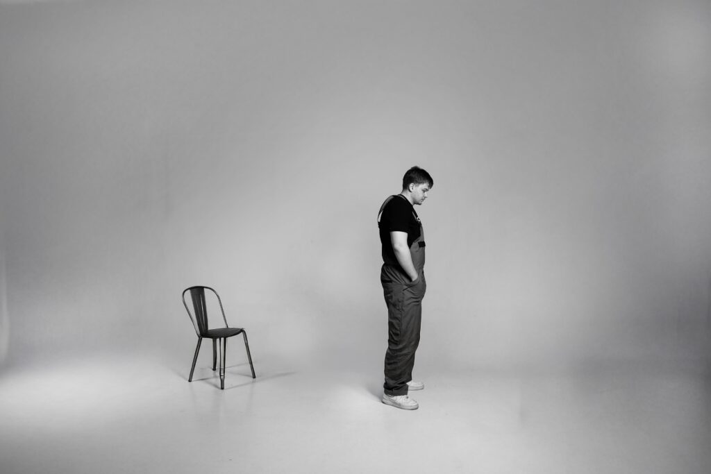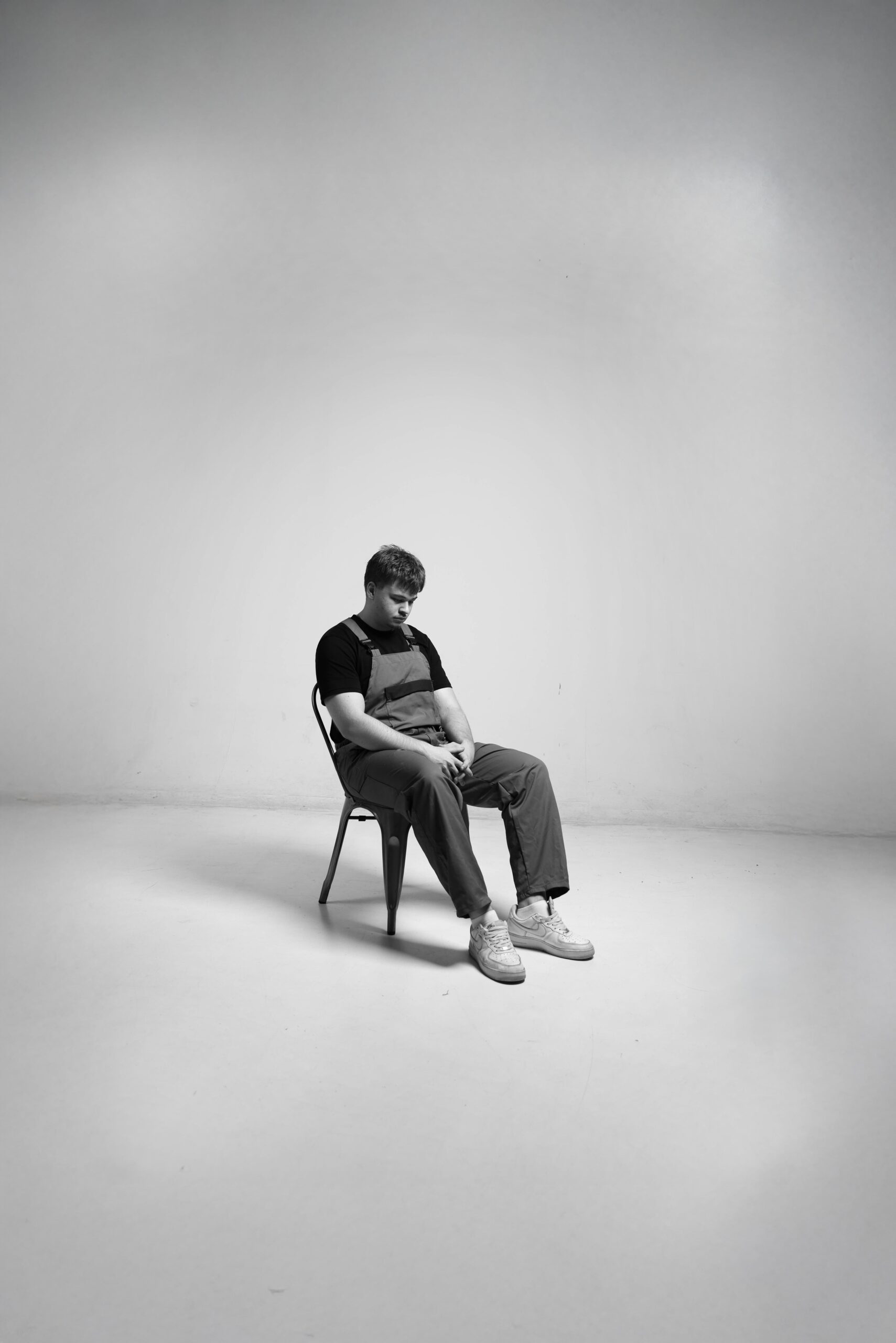 The series centers around a single character, portrayed as both present and invisible within unfamiliar spaces. Locations were carefully chosen—empty rooms, unfamiliar streets, late-night workplaces—to mirror emotional distance. Symbolism plays a quiet but strong role: reflections in windows, blurred backgrounds, and cold lighting evoke the constant duality of presence and absence, of being physically here but emotionally elsewhere.